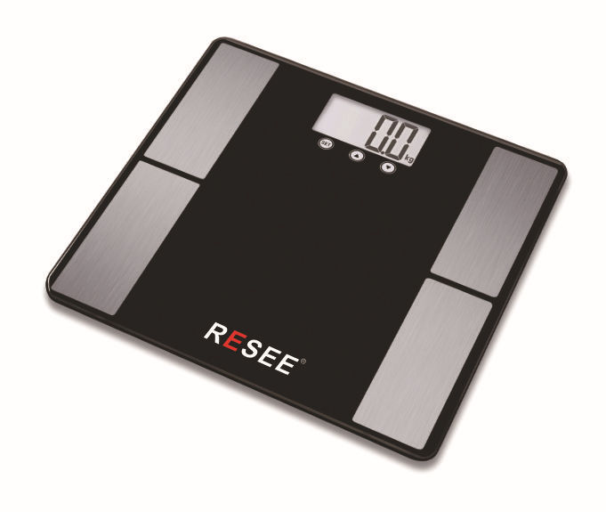 Weighing/precision: 5 kg to 180 kg /100 g; LCD backlight display, Unit: weight/fat/water/bone/muscle/age/BMI/calories Material: tempered glass platform + ABS case High precision sensor system: automatic weighing locking data function Overload/low power prompt function: automatic dormancy, switch machine function to save power Battery:2 * CR2032 Battery.Warranty period of 1 year